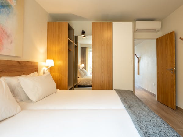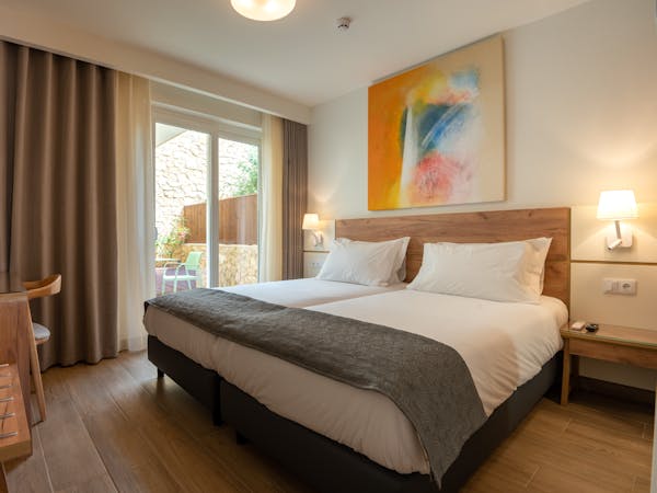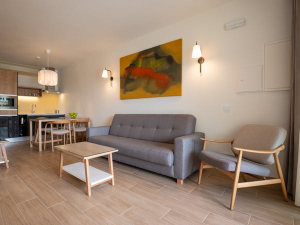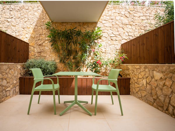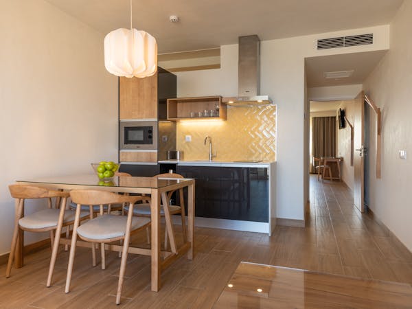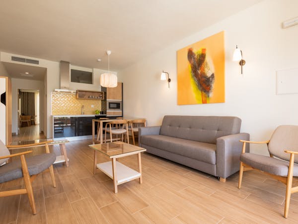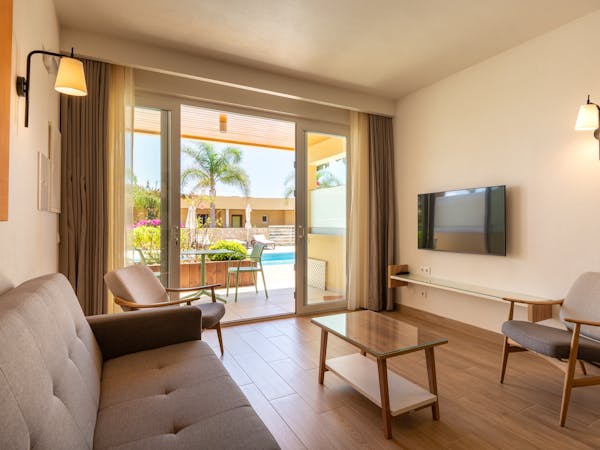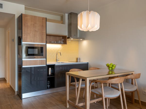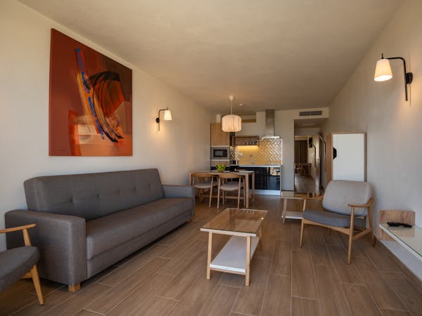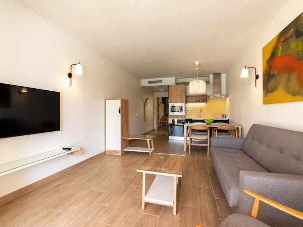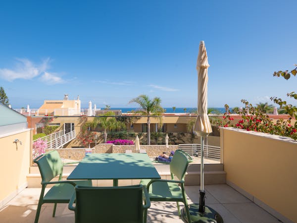 When booking, you can choose between apartments with sea views located on the first floor with independent access from the hotel and apartments with pool views and direct access to the pool, which also stand out for their interior patio with access from the bedroom.