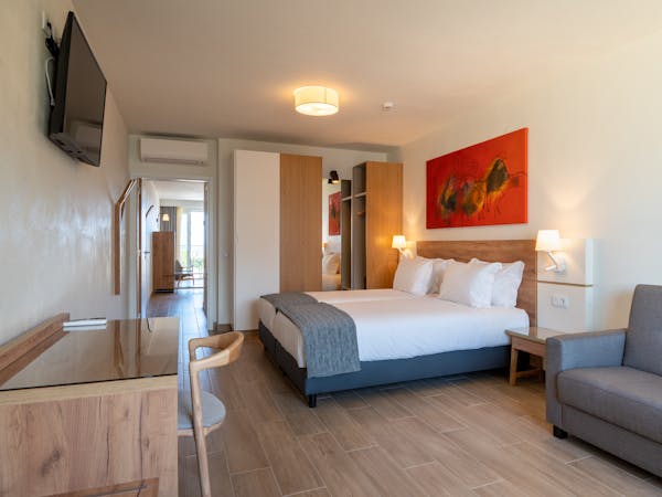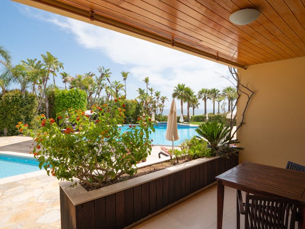 This typology stands out for its large balcony and you can choose when booking to choose sea view or pool view. These studios can be located on the first floor or on the ground floor, while those on the ground floor will have direct access to the pool from the balcony.